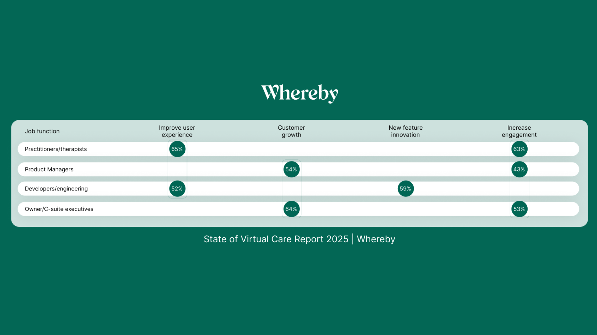 Fortunately, there’s some alignment in the priorities for the future. Product managers and C-Suite executives are closely aligned on prioritizing user growth and patient/practitioner engagement. Then we have practitioners and therapists who also want to improve the user experience and boost engagement, a reflection of their day-to-day interactions with patients.