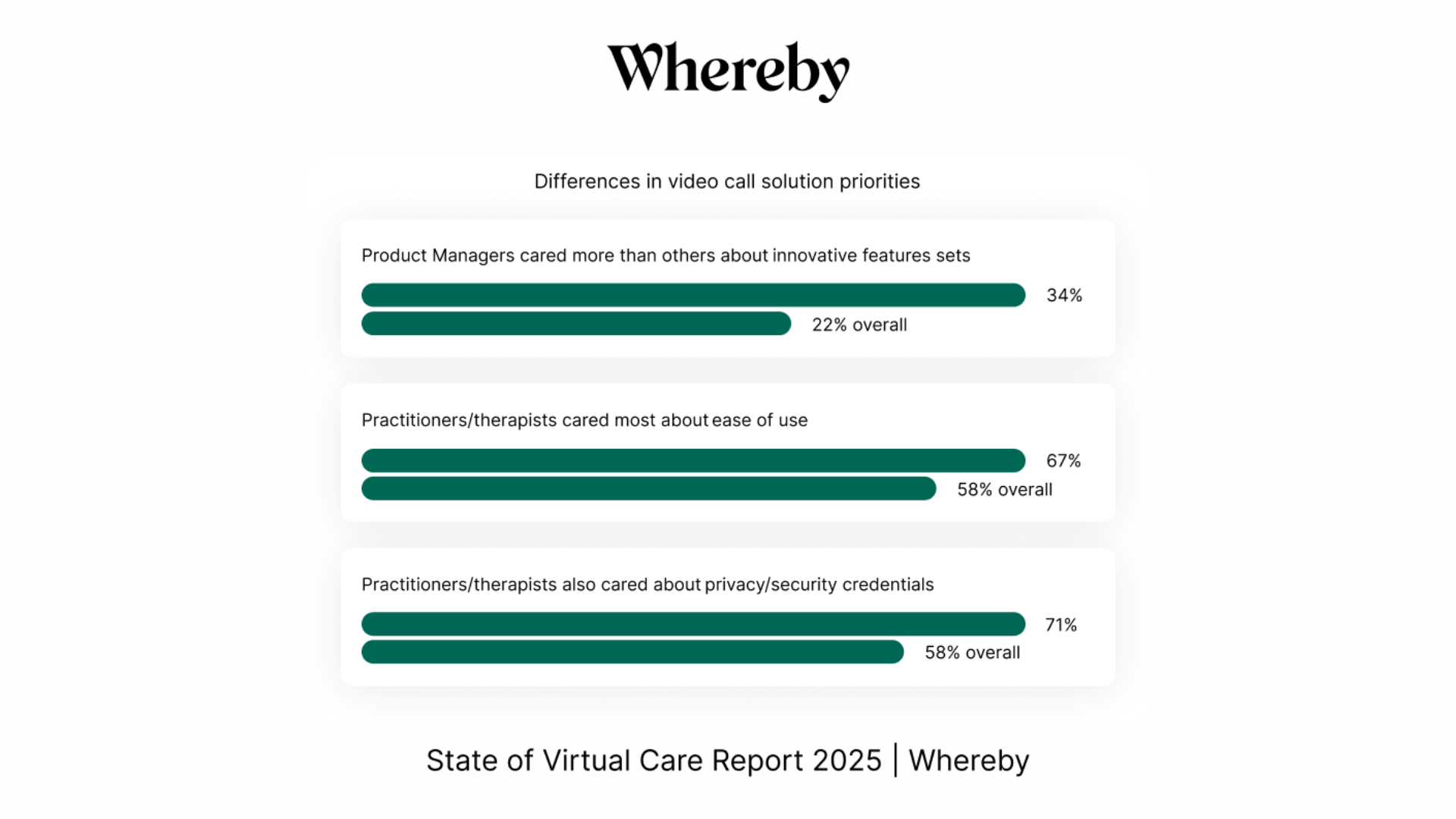 From our research, the major differences between practitioners, therapists, and product teams are in what they perceive as important in telehealth.