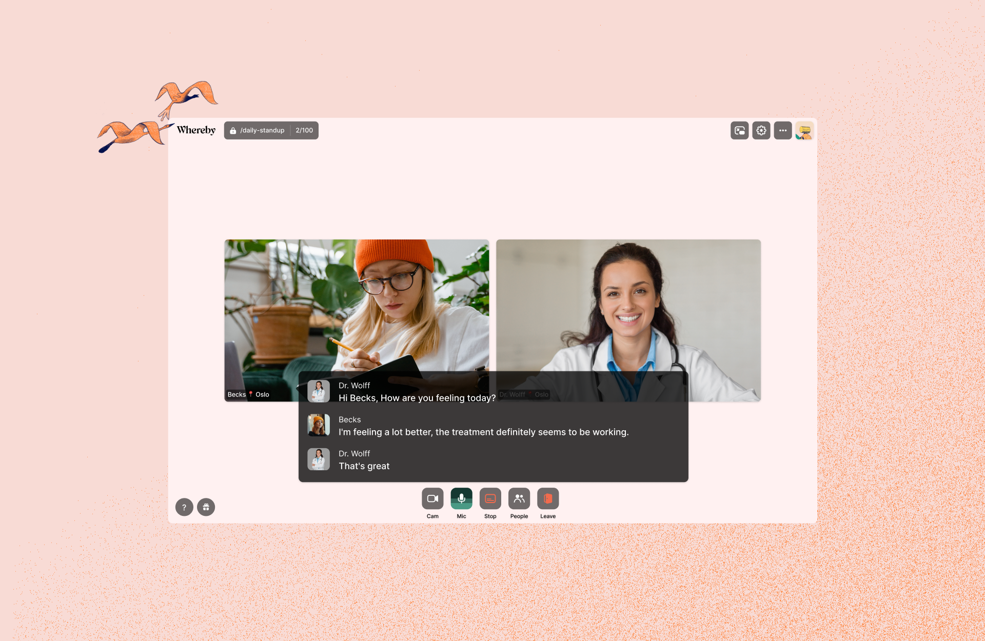 At Whereby, we believe exceptional virtual care is defined by how intuitive the technology behind it is and how it makes people feel.