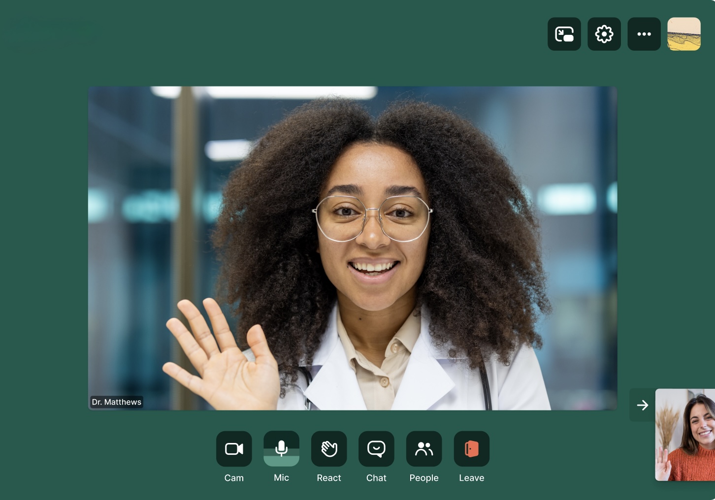 At Whereby, our telehealth experience is intentionally simple, browser-based, and designed to focus on the session. For teams who want tailored virtual care journeys, our video call API incorporates features and a UI proven to support trust, clarity, and ease of use.
