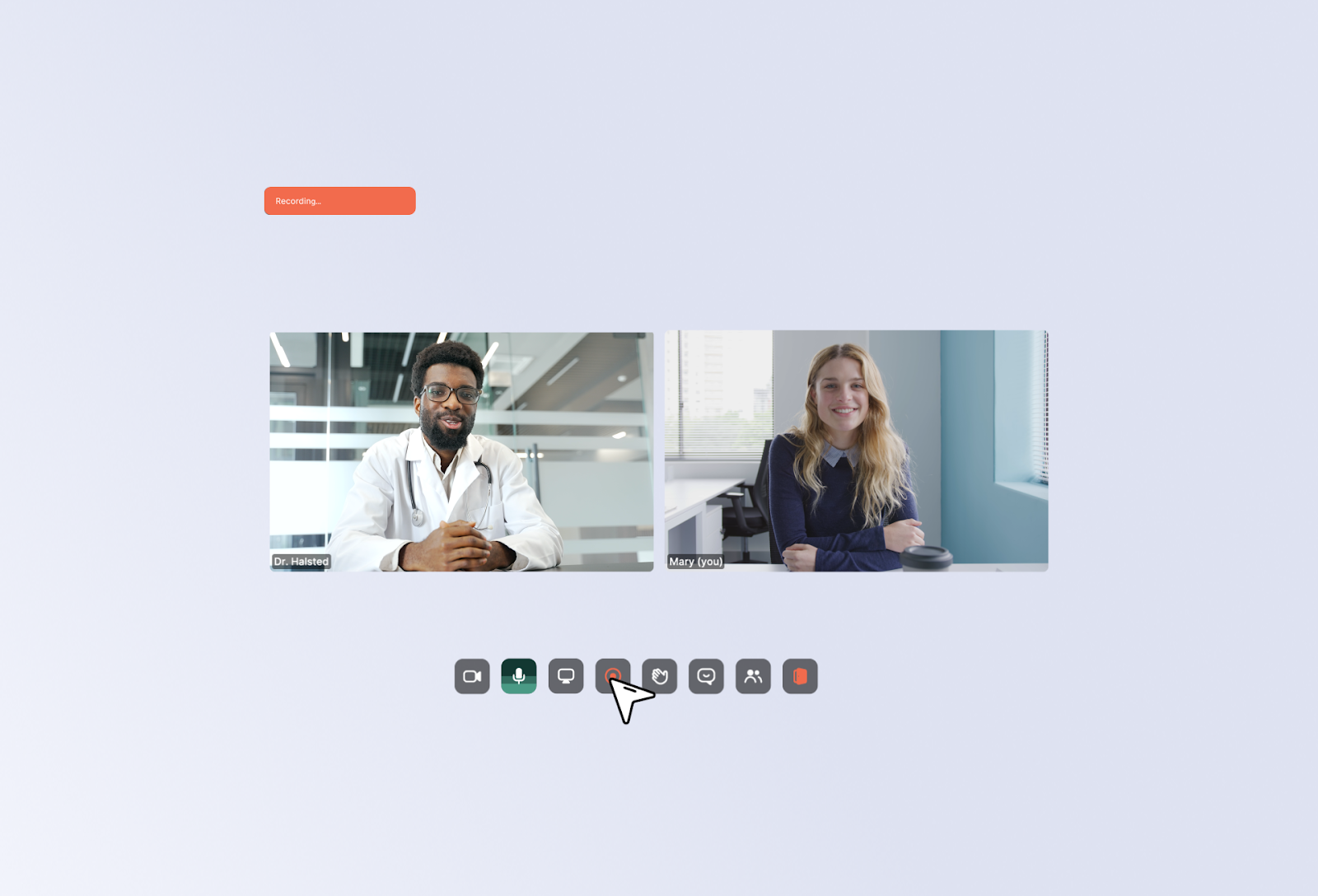 Once the session begins, the in-call experience should feel calm and unobtrusive. Use clean interfaces, simple colour palettes, and minimal, non-distracting controls. Give patients and practitioners clear, reassuring UI cues for actions like recording or transcription, so nothing feels unexpected or confusing.