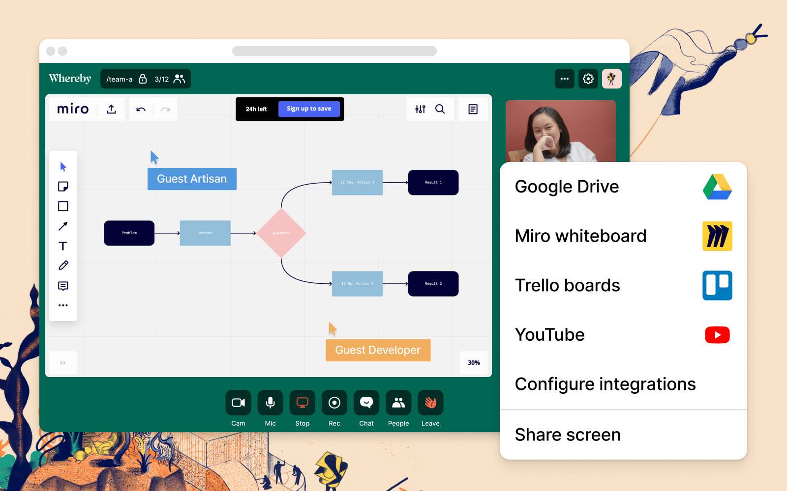 It’s been an absolute game changer for internal team meetings at Whereby, and is also much-loved by our Sales team when they’re pitching to potential new customers.