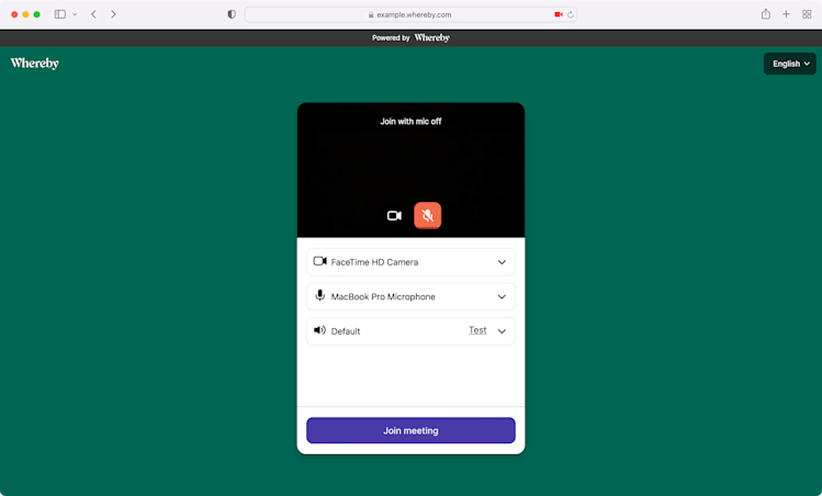 You can also optimize Whereby for virtual business meetings. Before participants join a meeting room, they may be prompted to check their camera and microphone settings. Whereby calls this the pre-call review.