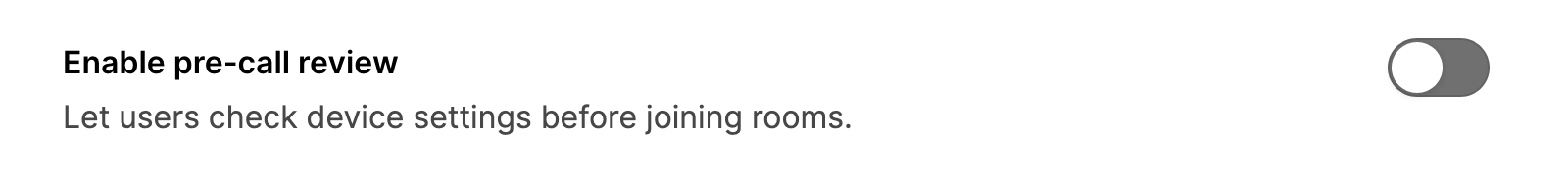 For example, if you disable the pre-call review, you may want to ensure that participants’ cameras are off and that their microphones are muted when they enter. You can use the audio and video parameters for that.