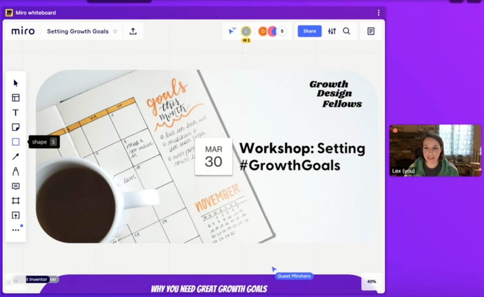 The group’s newest program is called Growth Design Fellows. Powered by Whereby, it allows paying members to access three types of events: monthly technique deep-dives on specific topics, small group meetings led by mentors to reflect on challenges in their work, and curated interactive workshops featuring special guests from Google, Netflix and more.