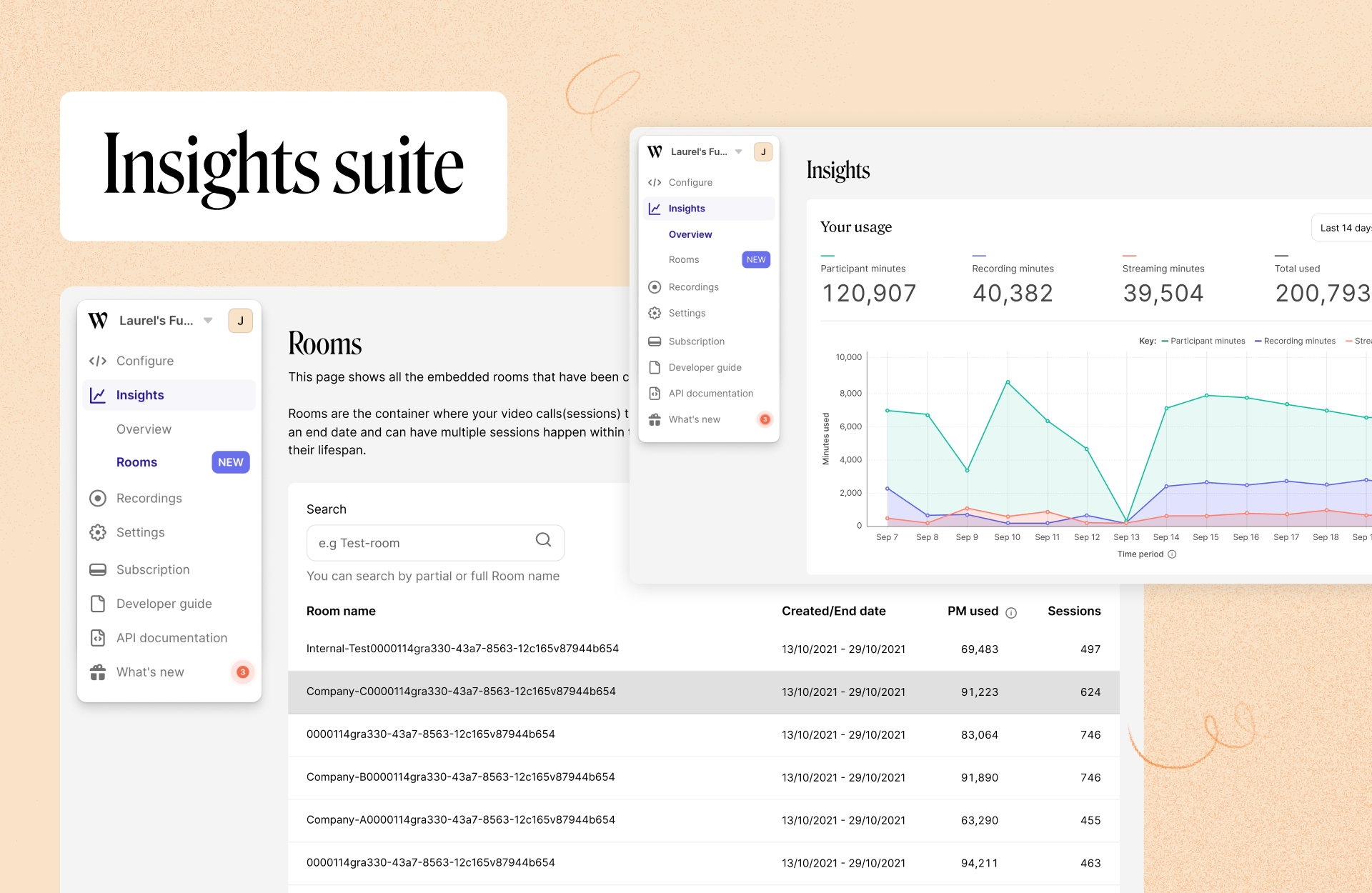 With Insights Suite, you can better understand how your customers are using video calls in your platform, so you can bill them more accurately and improve their video experience even more.