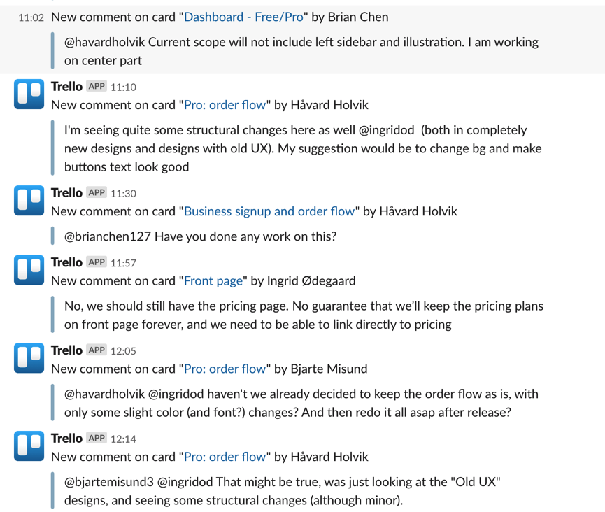 To keep your team in sync, it may be a good idea to set up a daily meeting where everyone shares what they did yesterday, what they’ll work on today and whether they need help with anything. Maybe you need a longer planning meeting at the start of the week, or a wrap-up meeting to show and tell what you worked on at the end?