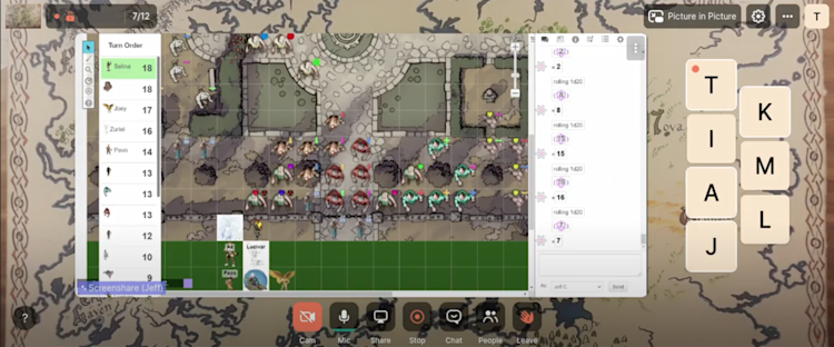 Trisha also made use of Whereby’s custom backgrounds to help with gameplay. “I have my map of the world as my background so I don’t have to switch back and forth between tabs to explain where things are. Everyone can see it.” And being able to share screens has helped, too. “I like how clear screen sharing is. It helps everyone know what’s going on in the game.”