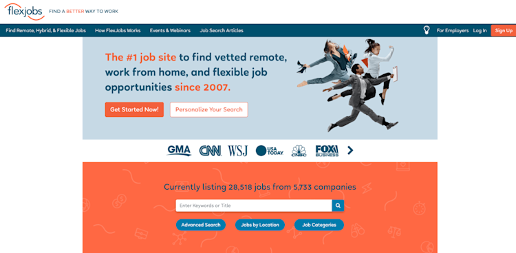 You may also want to consider looking at platforms that specialize in remote work, such as FlexJobs. This site vets and filters jobs to make sure you’re searching in a high-quality pool. As a result, it costs to join. But there’s also an option to join for one week. This may be good if you want to poke around and see what’s available, make a note, and then stop paying for the full service.