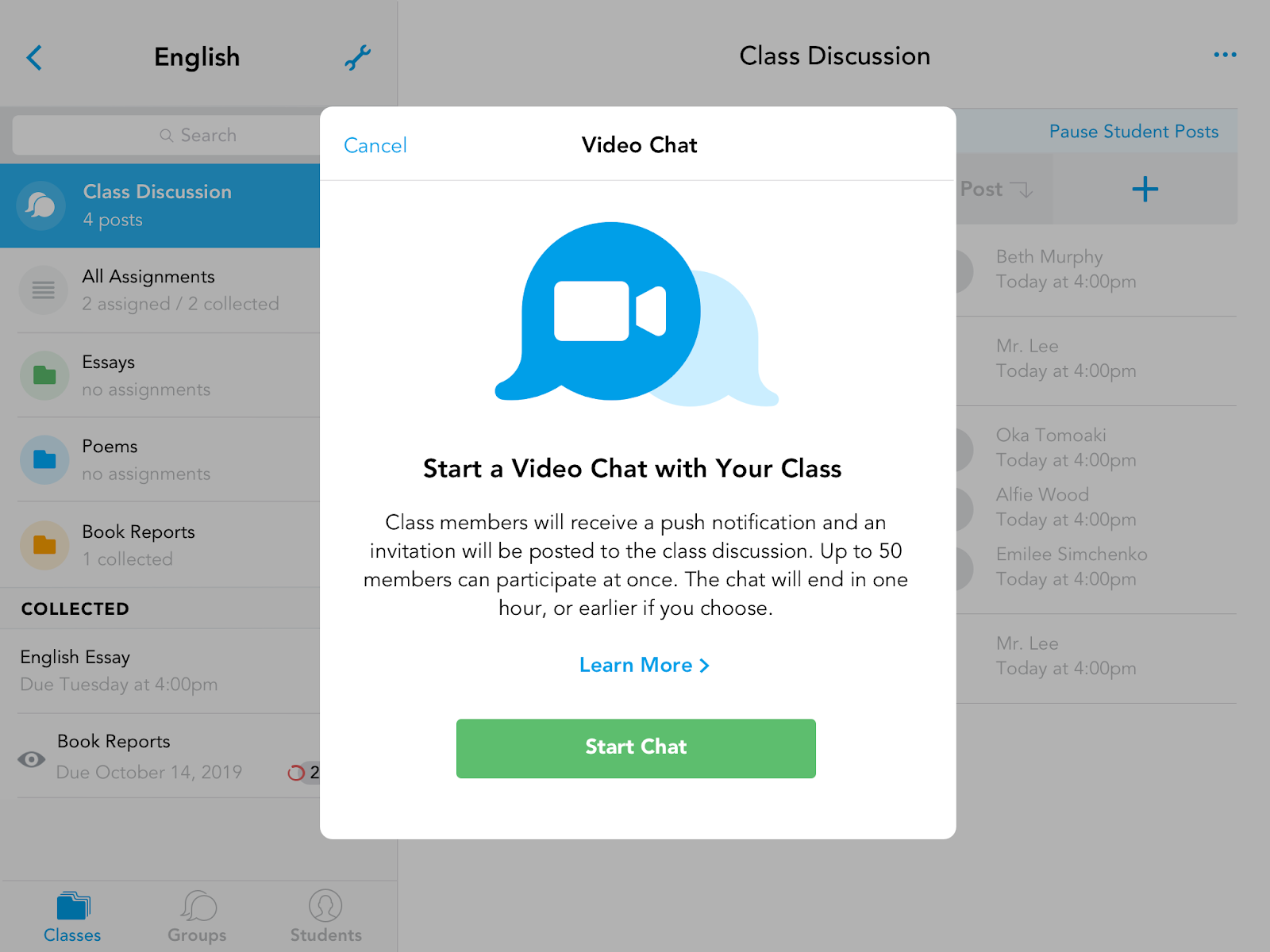Showbie is a platform that delivers real time lessons and inspires creativity through paperless teaching. Teachers can create assignments and grade them using voice messages or one-on-one video chats. This enables them to help students of different levels much more easily. When schools were closed due to COVID-19, supporting the teachers and students through video was a must-have for Showbie.