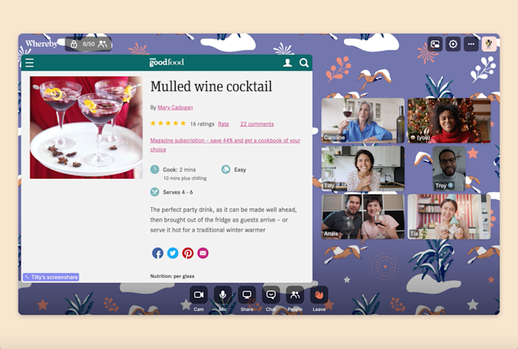There’s no reason you can’t break bread with your friends this festive season. Here are our top tips for making a festive virtual dinner party with Whereby.