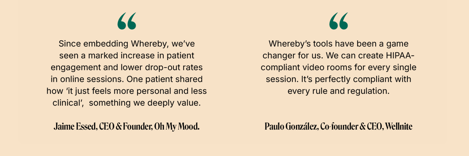 With Whereby’s seamless, reliable video calling, Telehealth platforms have huge potential to improve session quality, trust, and patient satisfaction.