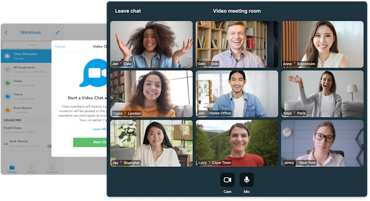 Embedded comes with all the Whereby functionality people love, like screen sharing, chat, integrations (with Miro, Trello, YouTube, and more), plus emoji reactions. You can also add or remove functionality as needed, including video, audio, screenshare, chat, ‘leave’ button, and custom backgrounds.
