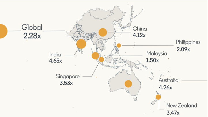 Here’s what the growth in job listings for remote positions looks like throughout APAC: