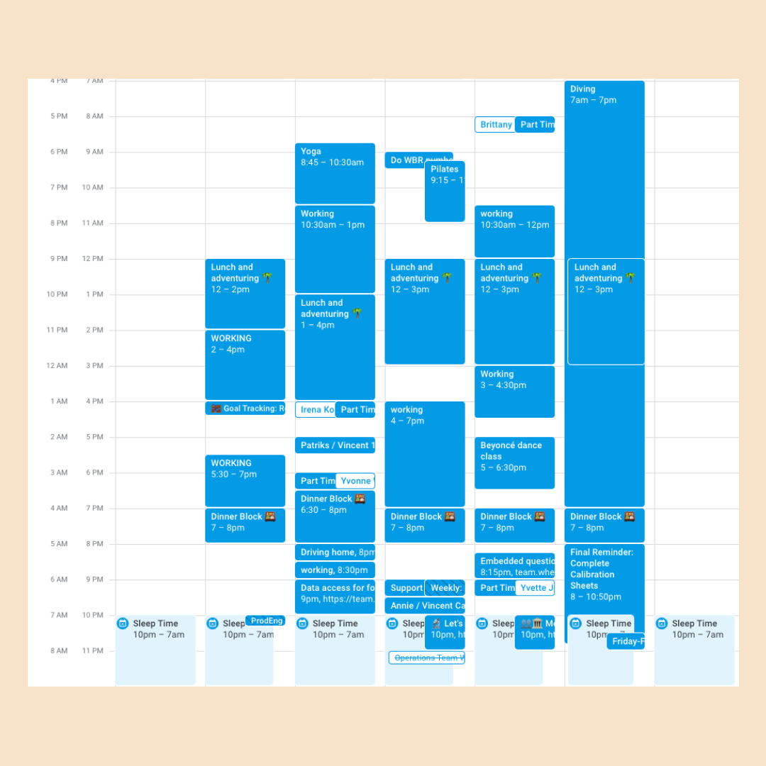 It may seem like an obvious statement, but when you shift your time zone 14 hours forward there’s all kinds of complexity that you need to sort out. Suddenly meetings that you take at 7am are happening at 9pm, and it’s unreasonable to ask everyone to adjust to you.