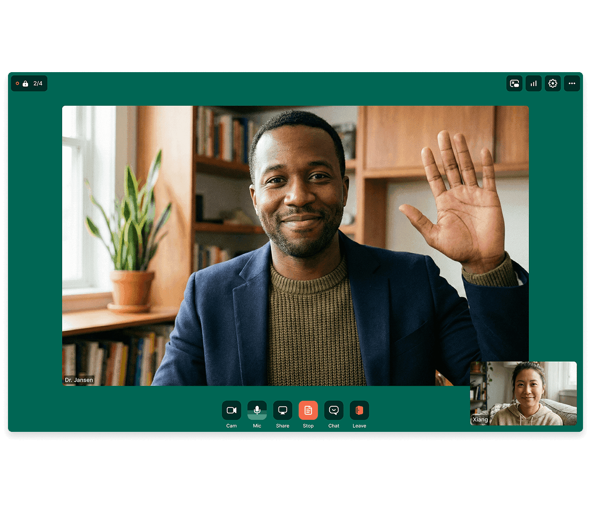 User-friendly video calls with no downloads that work seamlessly on desktop and mobile, even in low bandwidth scenarios.
